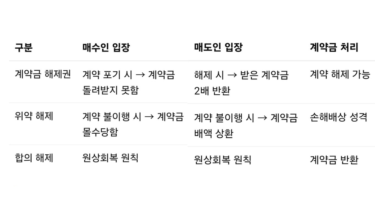 부동산 계약 해제는 크게 세 가지로 나눌 수 있습니다.