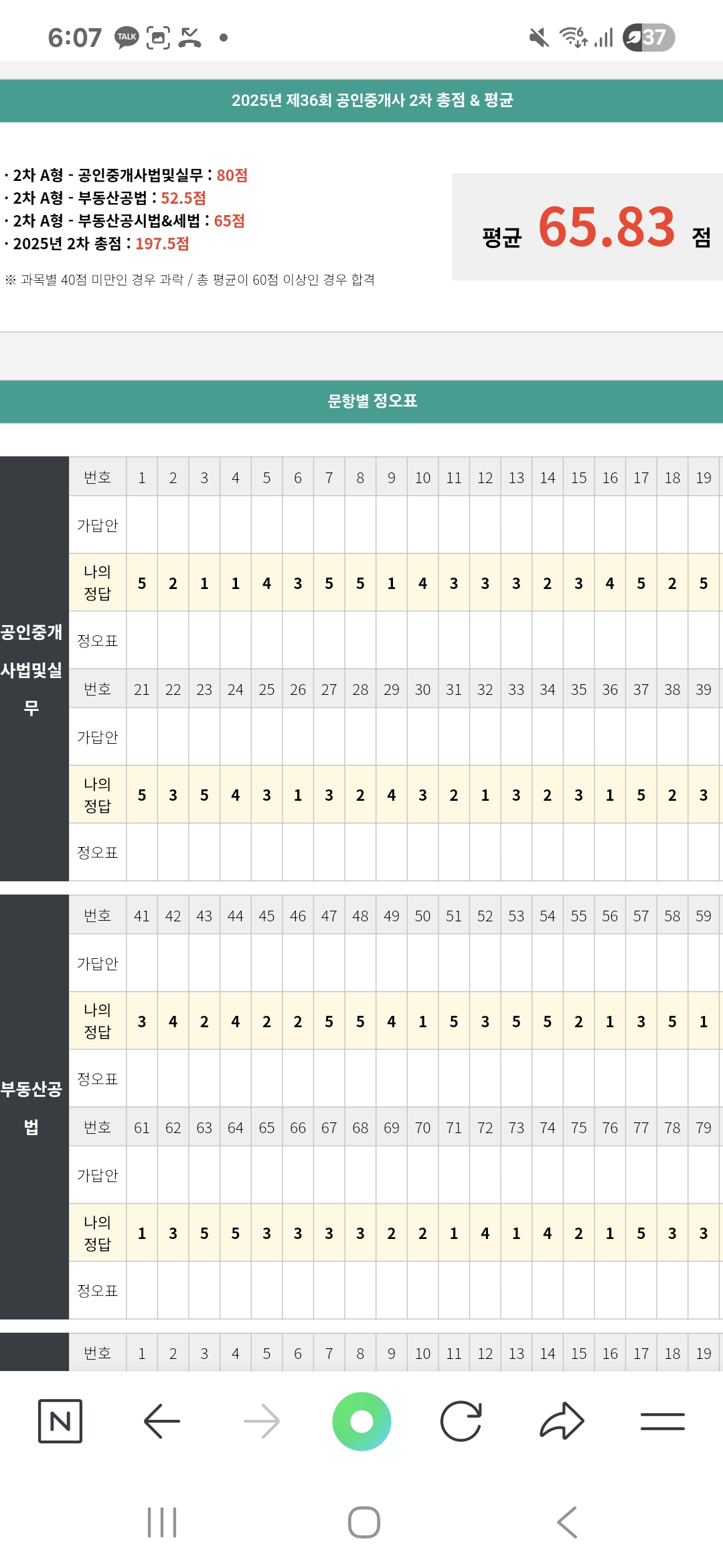 중개사법은 결국 80점이라는 결과로 돌아왔습니다.